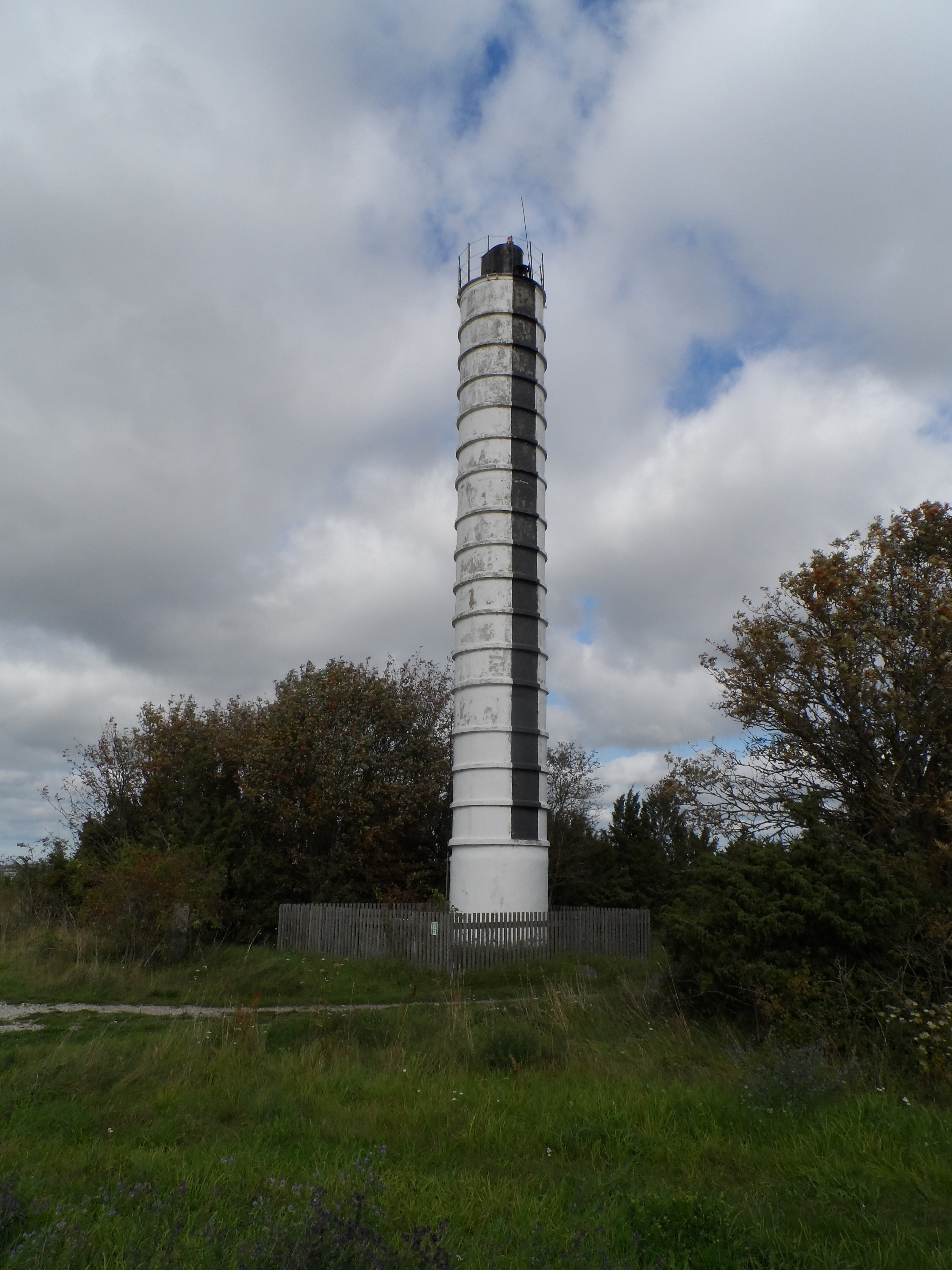 Musta püsttriibuga valge betoontorn