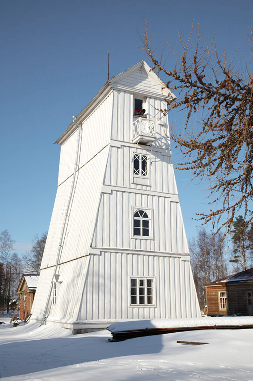 Neljatahuline tüvipüramiidikujuline valge puutorn