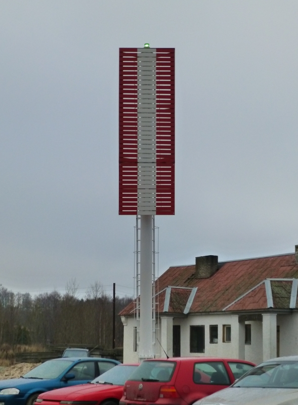 Valge püsttriibuga punane täisnurkne tahvel metallsambal
