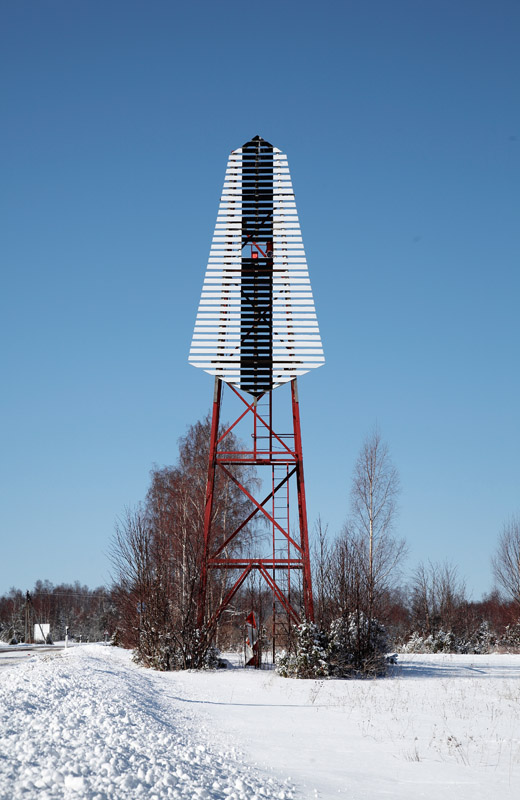 Musta püsttriibuga valge rombikujuline tahvel metallsõrestikul