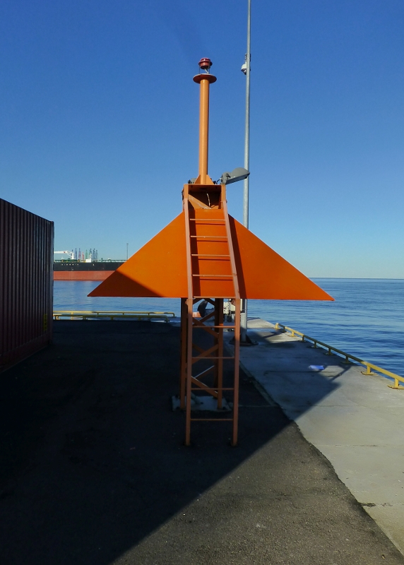 Oranz metallsõrestikmast. Keskel oranz tüvipüramiid.