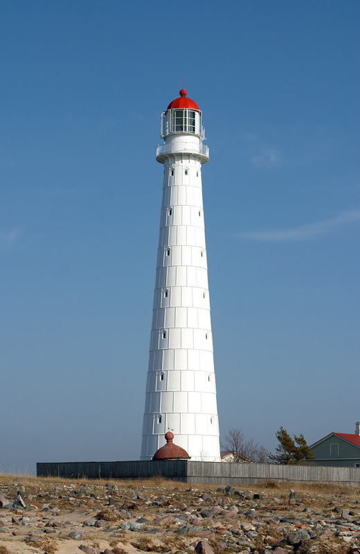 Laternaruumi ja rõduga valge kooniline metalltorn