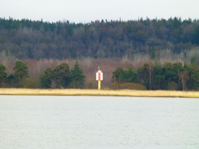 Punase püsttriibuga valge täisnurkne tahvel kollasel metallpostil