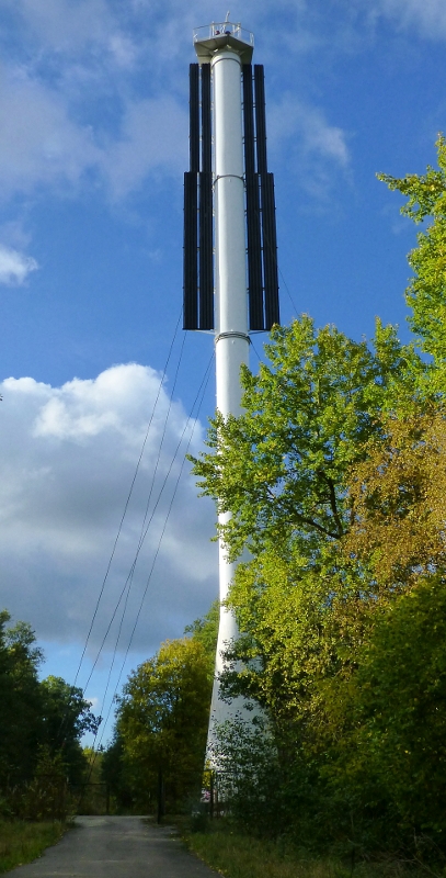 Valge metalltorn mustade täisnurksete külgtahvlitega