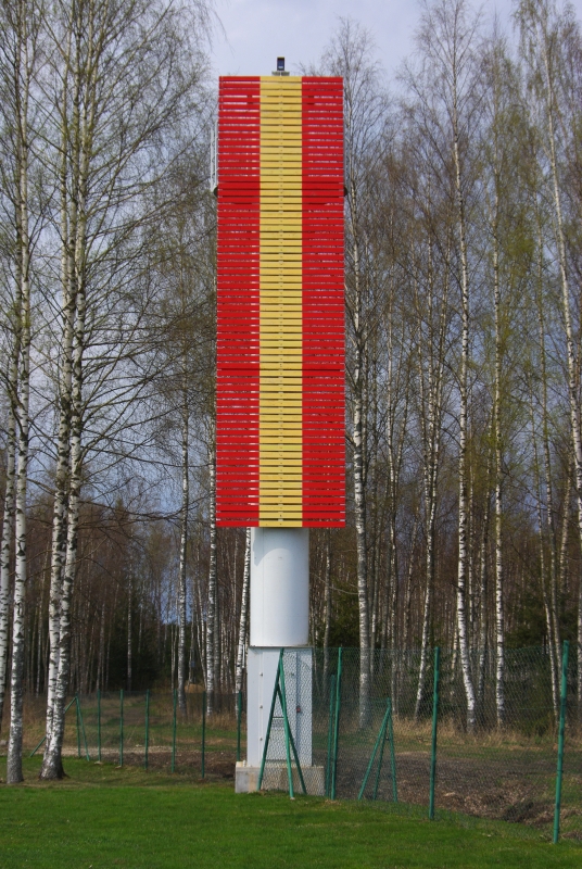 Kollase püsttriibuga punane täisnurkne tahvel metallsõrestikul